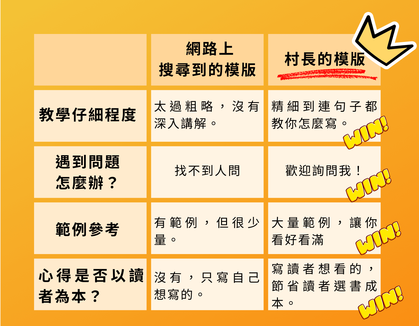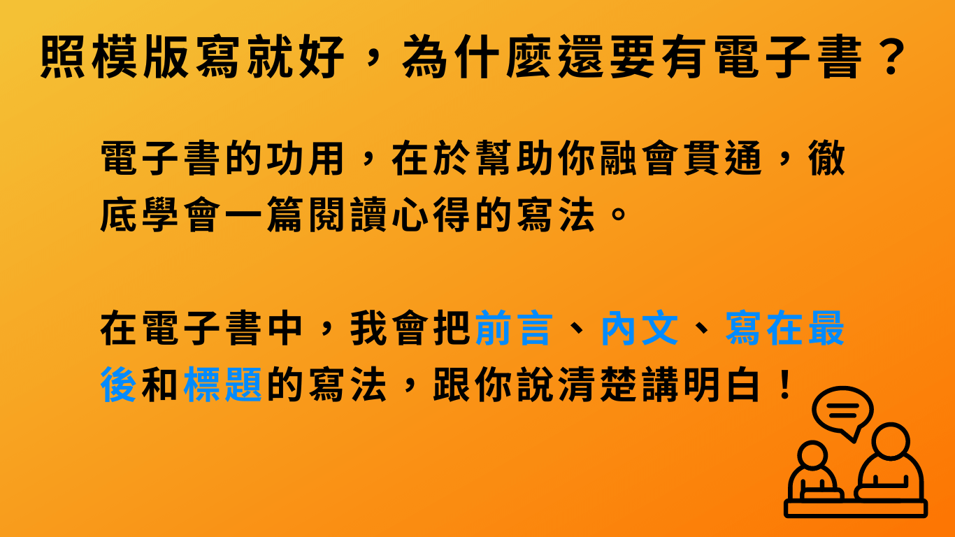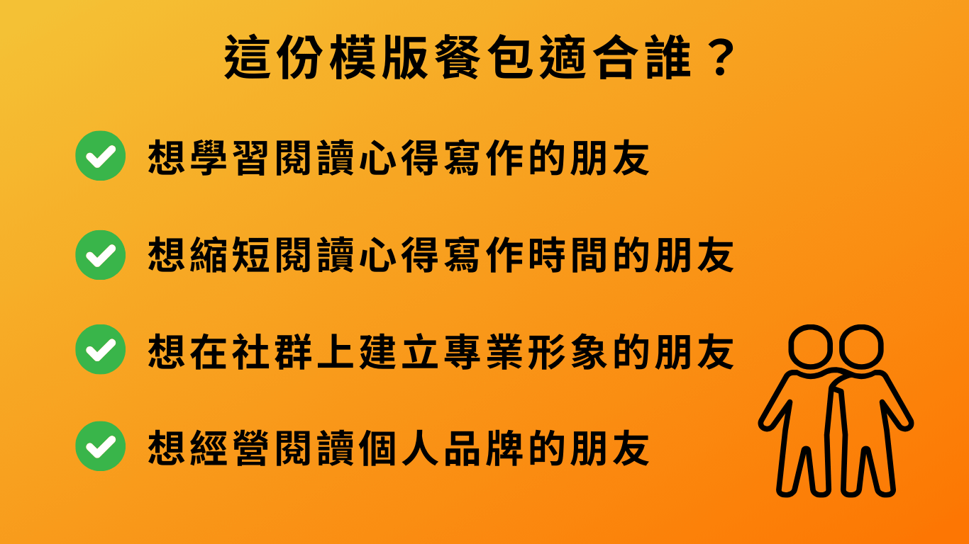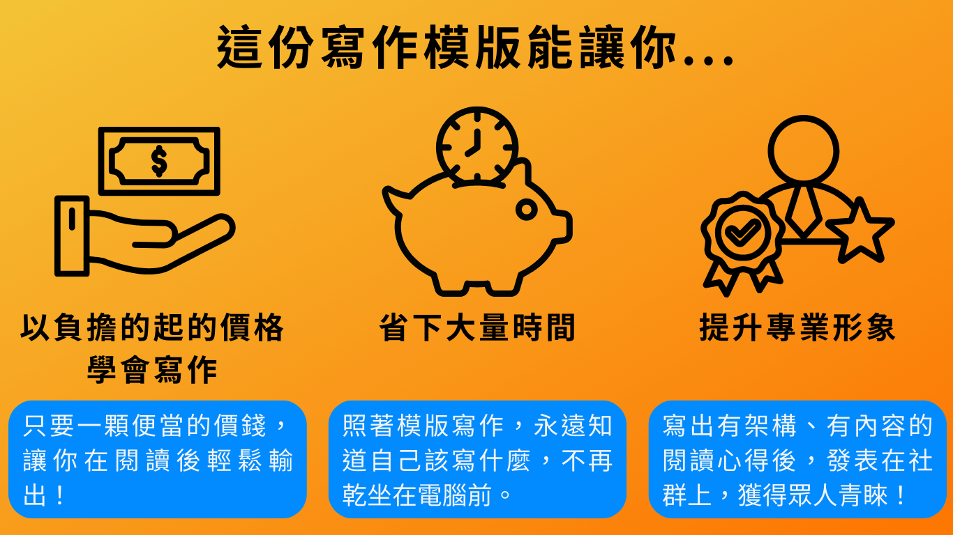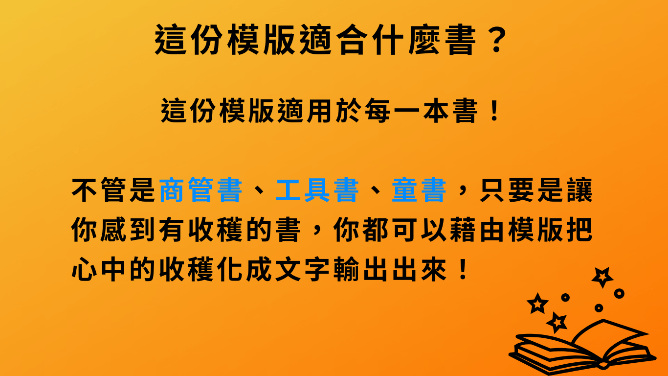 如果想要獲得以上好處的話,歡迎!歡迎來學習我的《書評(閱讀心得)寫作模板餐包》!學習過程如果有遇到任何問題,也歡迎你隨時提問!